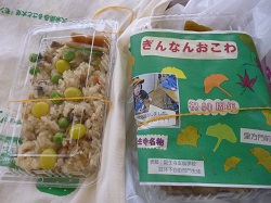 ぎんなんおこわ、ゆずコロッケ、ゆず餃子、いのしし汁、棚田米のおにぎり、