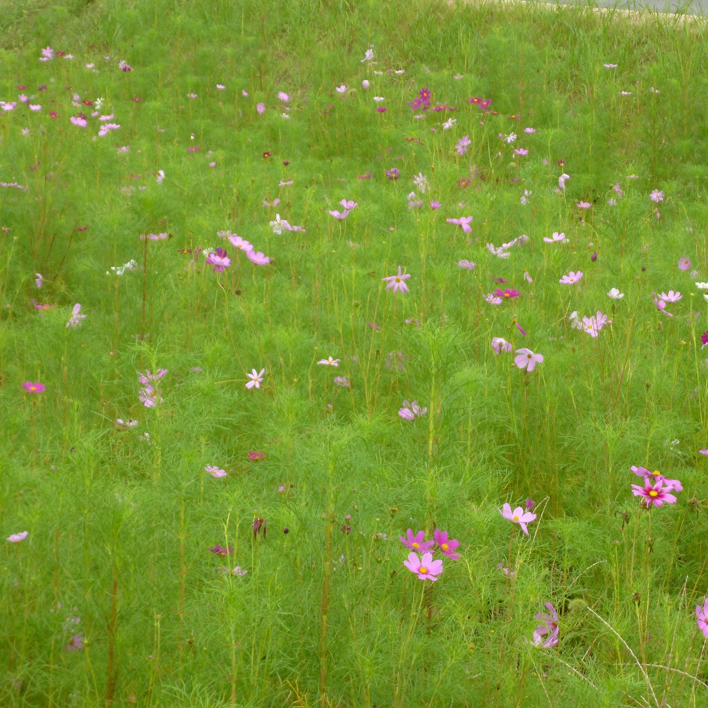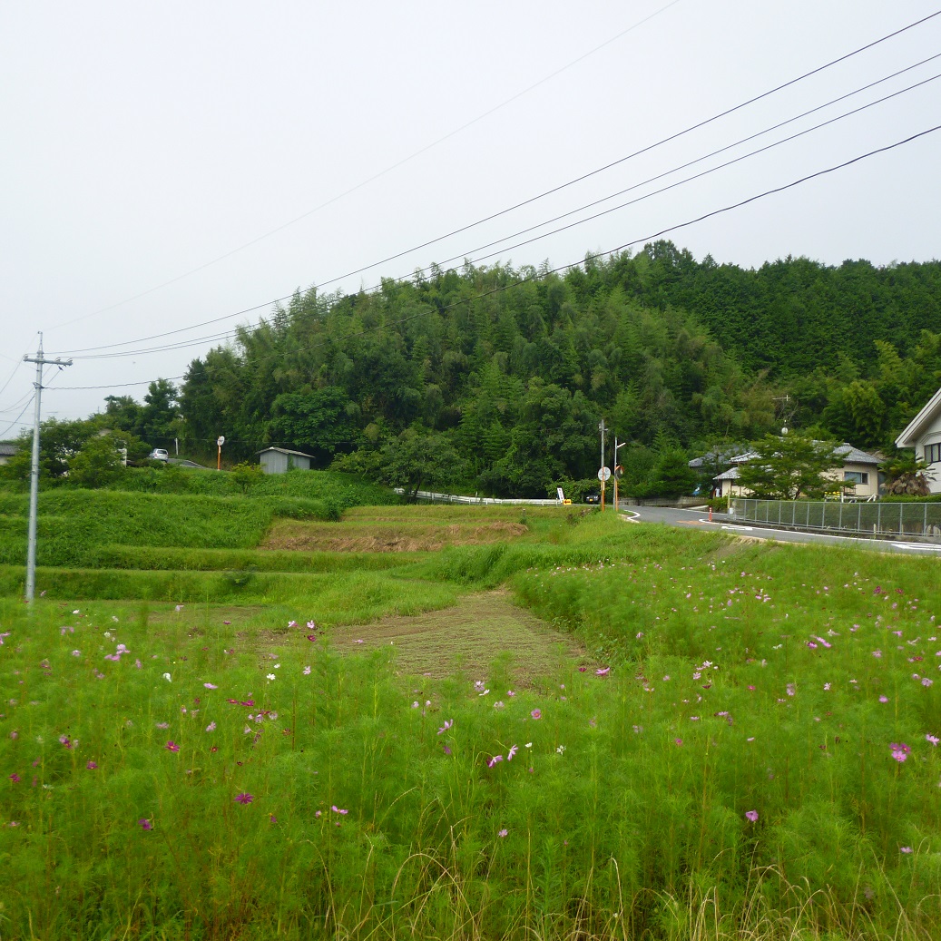 田畑にまじりコスモスの群生が