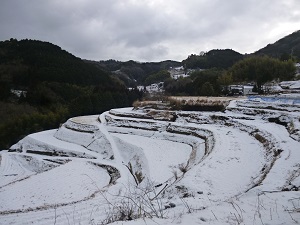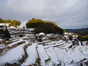 うっすら雪をかぶった棚田もなかなか
