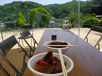 青空のもと朝一番の温泉とグルメをまったり満喫~